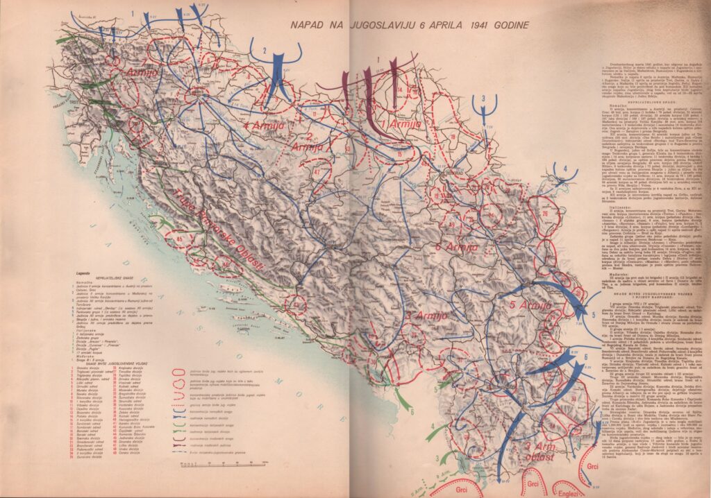 Немци су Југославију напали без објаве рата, сурово бомбардујући Београд 6. априла 1941. године, иако је он проглашен отвореним градом. Напад ваздушне армаде генерал-пуковника Александра Лера доносио је смрт међу цивилним становништвом и безобзирно разарање, којег није била поштеђена ни Народна библиотека. Непријатељске трупе су похрлиле преко југословенских границе из Немачке, Италије, Мађарске, Румуније и Бугарске. Главни удари су извршени из два правца: Друга немачка армија, јачине 11 дивизија, под командом генерал-пуковника Фон Вајкса, кренула је из реона Клагенфурта и Граца правцем ка Загребу, Београду и Сарајеву, док је Дванаеста немачка армија снаге 19 дивизија, под командом фелдмаршала Фон Листа напала из Бугарске како би пресекла везу између Грчке и Југославије. Југоисточни фронт се распао под првим ударом непријатеља и већ 9. априла Немци су загосподарили Македонијом. Северозападни фронт се, северно до Саве и Дунава распао између 6. и 10. априла. У Загребу је 10. априла формирана фашистичка Независна Држава Хрватска, а немачке трупе су 13. априла ушле у Београд.