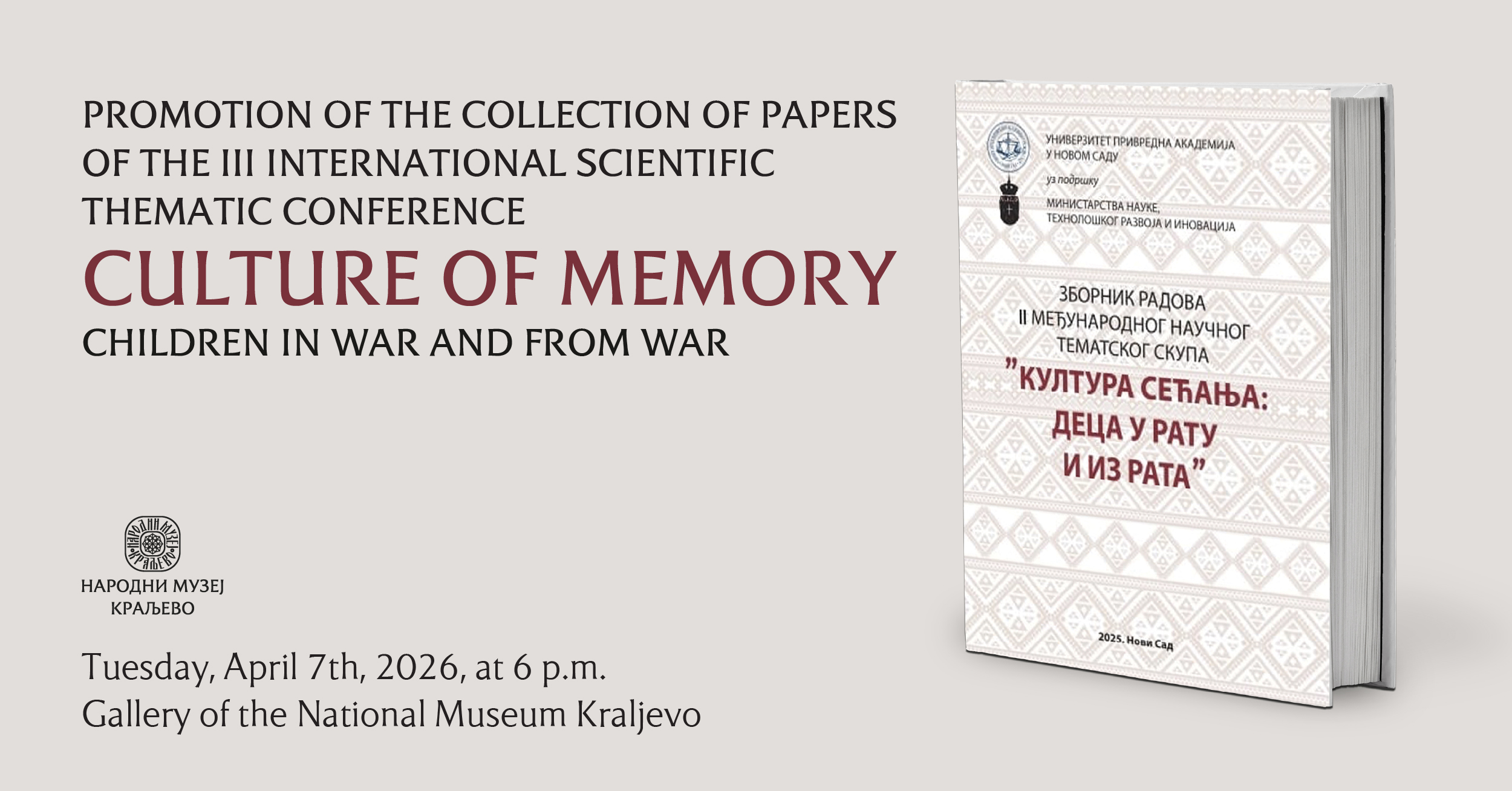 The scientific conference “Development of Towns in Western Pomoravlje in the 19th and 20th Century” is dedicated to the urban evolution of Čačak, Užice, Kraljevo, Trstenik, Kruševac, and Gornji Milanovac over two centuries of profound social, economic, and urban transformation. Special emphasis is placed on industrialization, infrastructure development, demographic shifts, and the emergence of modern urban centers that have shaped this region of Serbia.